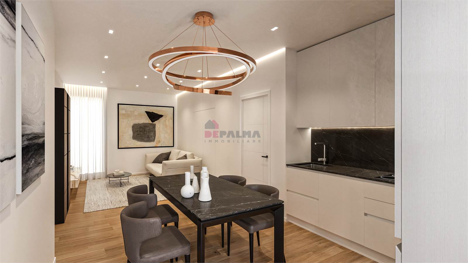 • Ampia Zona Living: Un open space moderno che unisce soggiorno e cucina in un unico grande ambiente luminoso, ideale per ogni tipo di attività, dal relax alla convivialità.